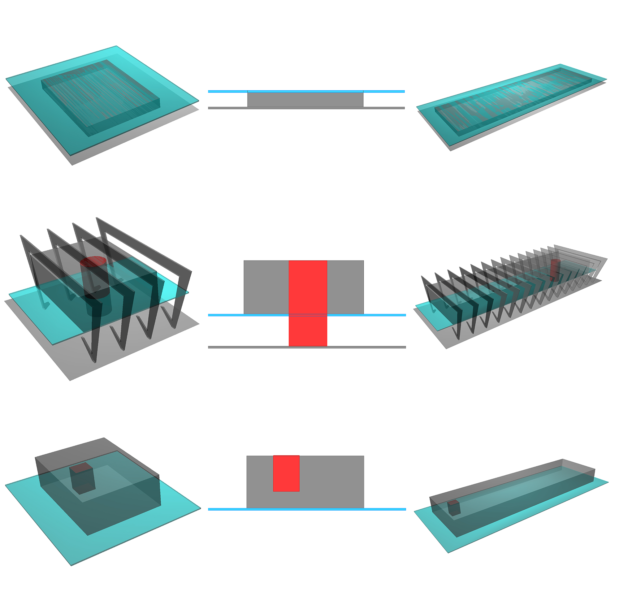 Digital model of the final project with a color coding of the iconic characteristics of each modernist museum. The blue Marquise from São Paulo’s museum, the red Porticos from Rio’s museum, and the green staircaises from Bahia’s museum.