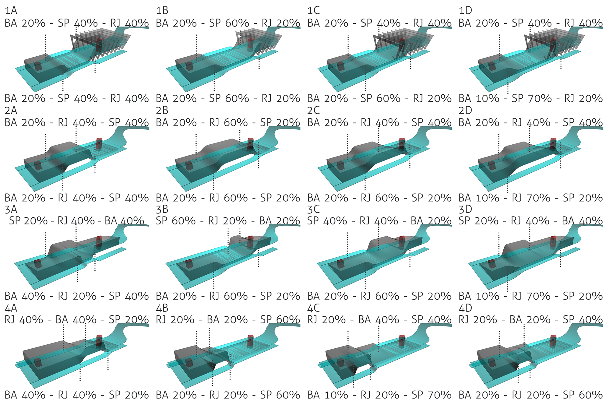 After this initial concept of mixing the main characteristics of the three museus literally by percentage, it was changed to develop a project by mixing the main characteristics conceptually and taking in consideration spatial qualities of the the three museus.