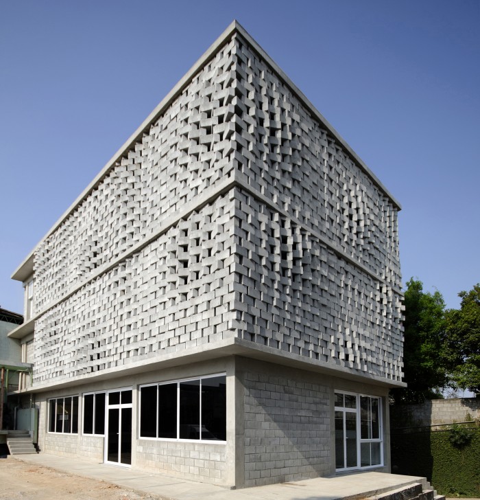 The budget was a big limitation, so uncoated materials with maximum possible functions were used. In this way the floor was made of raw polished concrete, walls of structural concrete block, and all the wiring would be apparent.